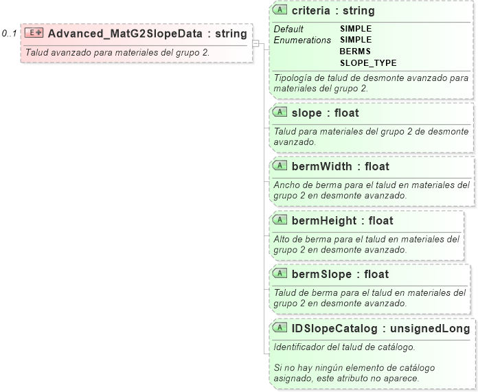 <xs:documentation>Talud avanzado para materiales del grupo 2.</xs:documentation>