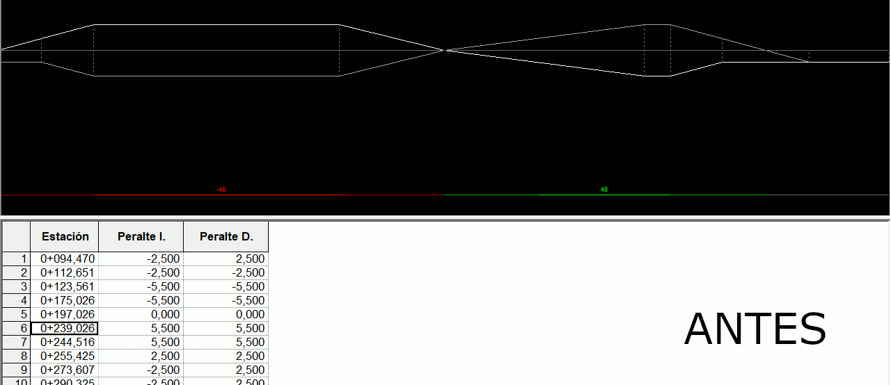 Había un error en la generación de peraltes en el caso de curva y contracurva cuando la primera curva carecía de clotoide de salida y la segunda tenía clotoide de entrada. Se ha corregido.