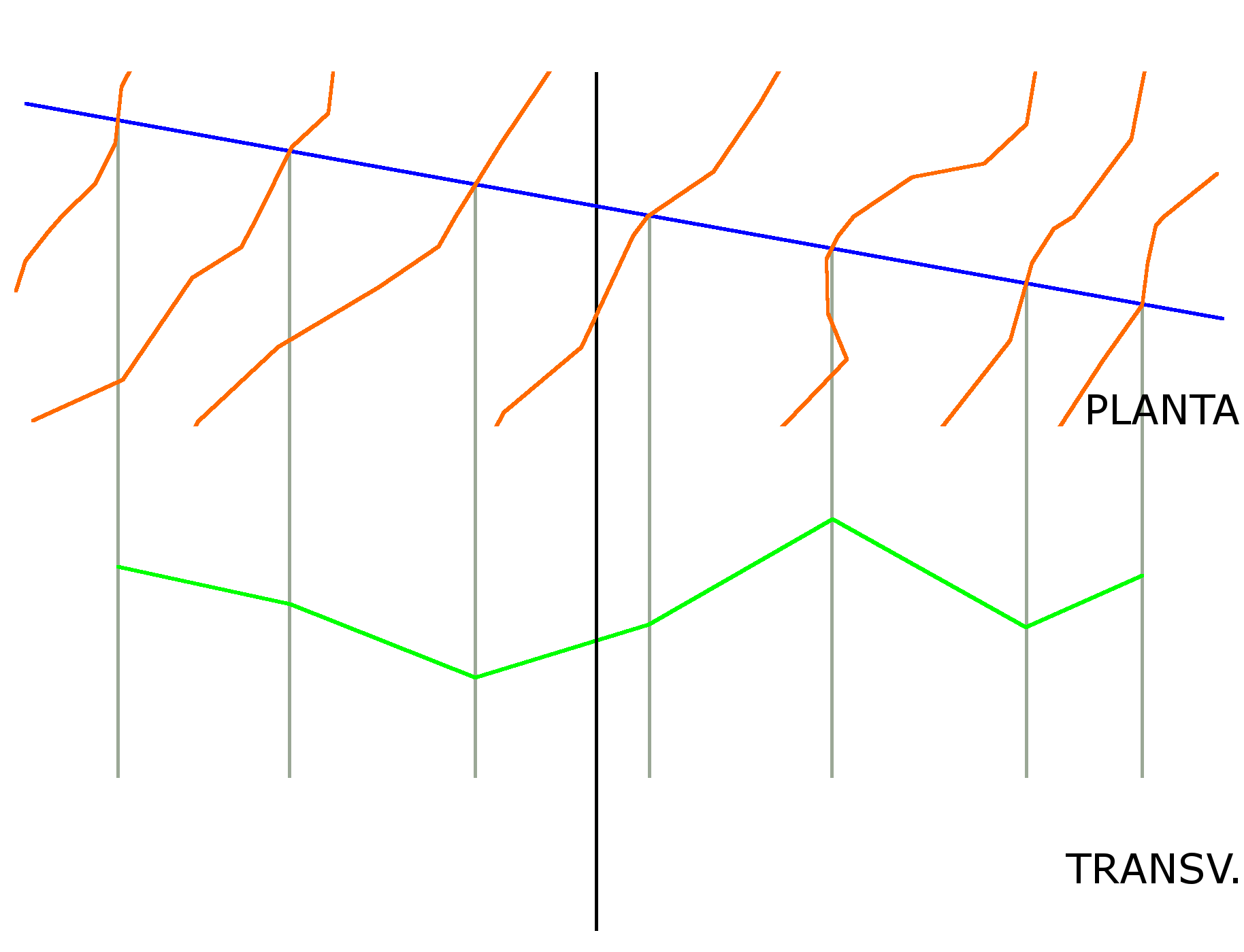 IMPORTANTE: Aunque se permite definir multitud de datos de cada obra de drenaje, el uso de los resultados de longitudes, aletas y pozos no está indicado para realizar replanteos, ya que el modelo de perfiles transversales no tiene precisión suficiente para esa finalidad en elementos puntuales y esviados como es el caso de obras de drenaje (téngase en cuenta que generalmente el modelo se define con perfiles cada 20 metros y entre esos 20 metros el programa presupone interpolaciones que pueden no corresponder con la realidad con la suficiente exactitud como para que esas hipótesis sean aceptables para fines de replanteo y otros cálculos similares).