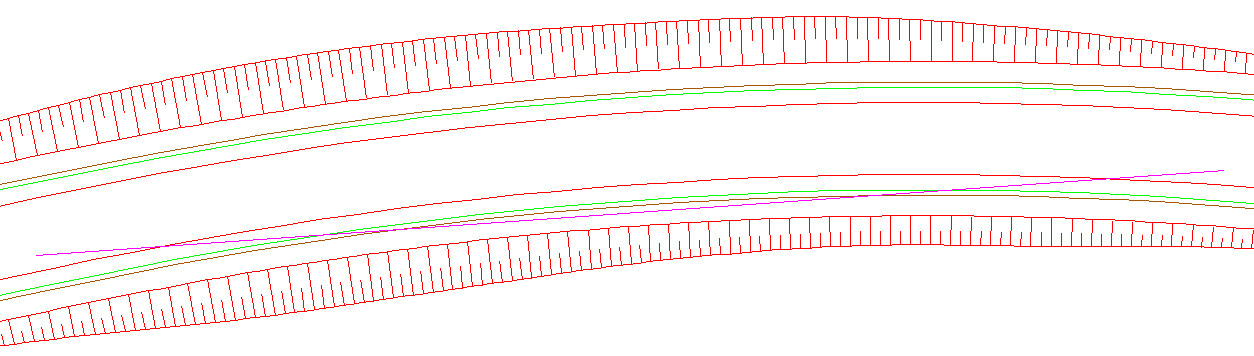 A continuación se compara esa distancia de visibilidad disponible con la distancia de parada necesaria en esa estación según Normativa para decidir la pluma con la que se representa la línea visual.
