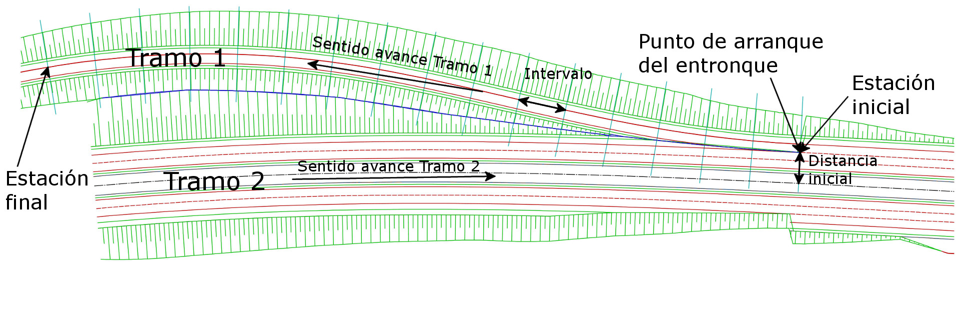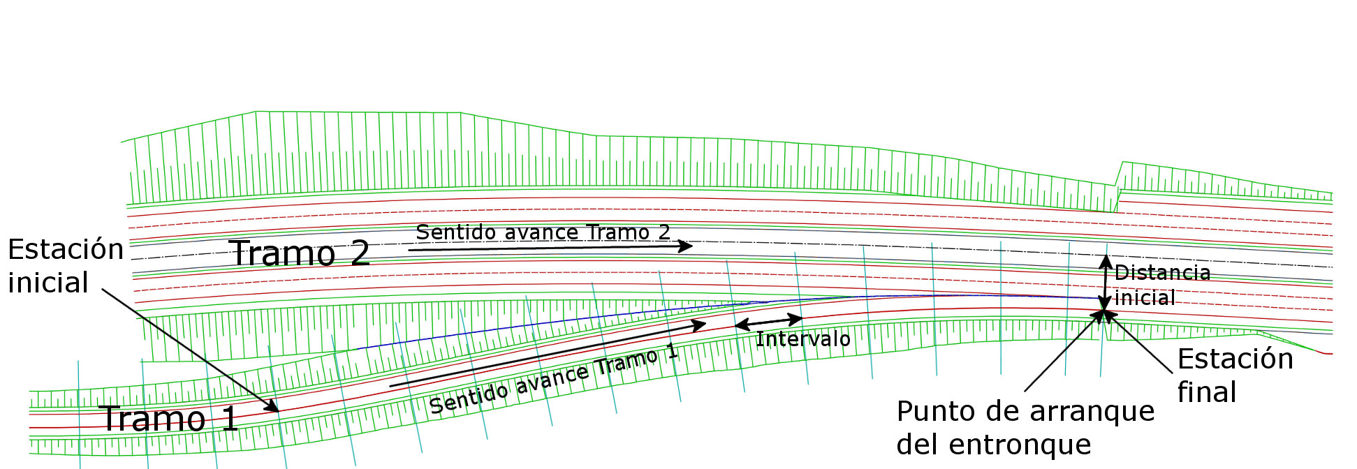 A continuación se presentan diferentes comportamientos relativos al entronque entre tramos en función de los datos de definición.