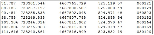 El archivo .IEC contiene datos relativos a los puntos de corte del eje desde el que se genera el archivo con las línea de la cartografía cargada en el momento de la generación.
