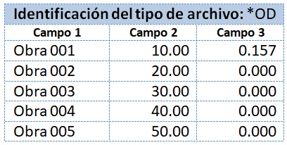 NOTA: El archivo .OD está obsoleto, y no tiene soporte para los nuevos datos introducidos en las obras de drenaje. Se recomienda utilizar el formato .XML en su lugar.