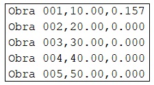 Una fila por cada obra de drenaje.