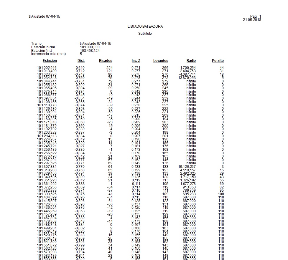 - Incremento cota (mm)
