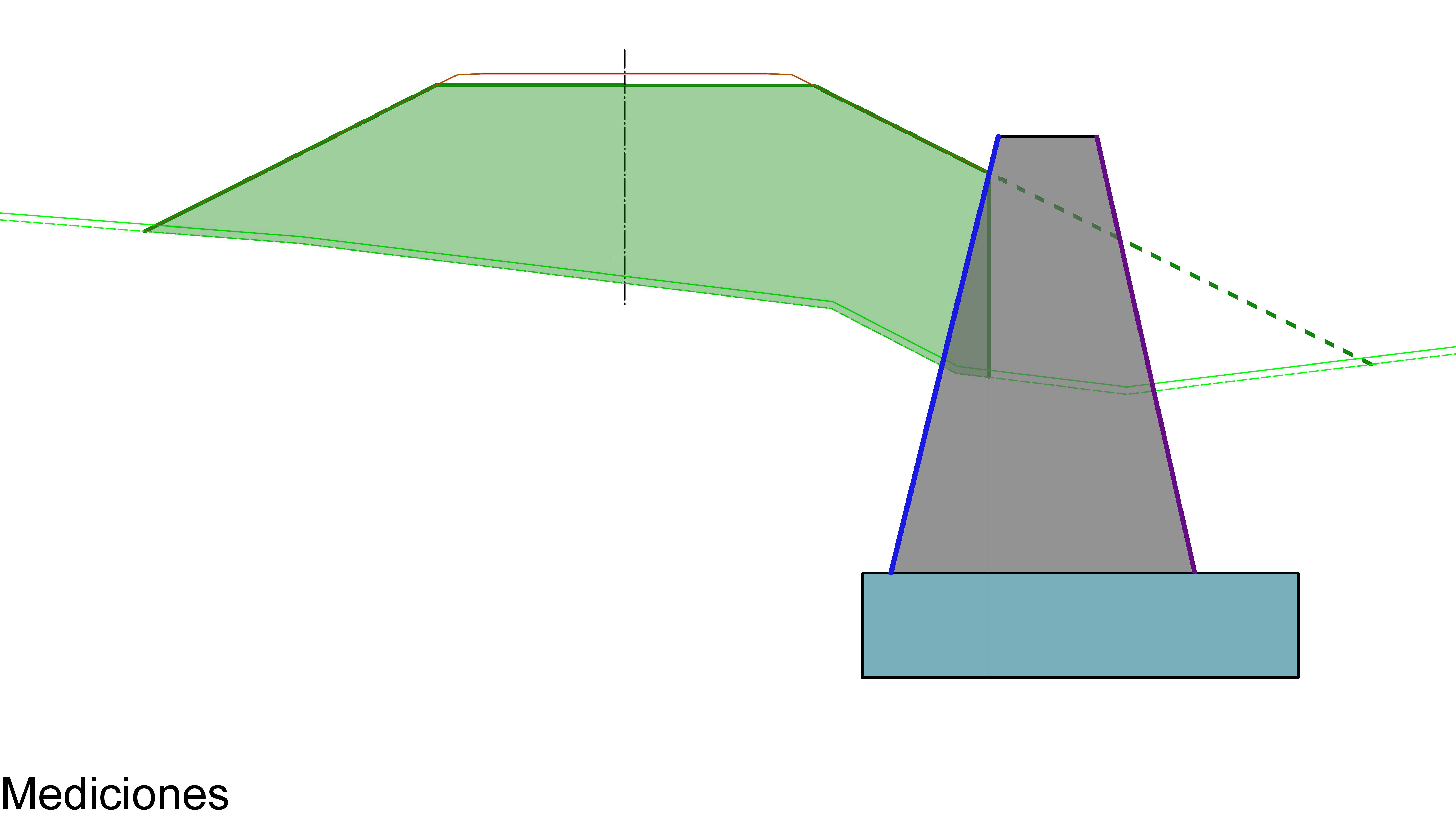 Superficies del talud interior de ese muro entre las estaciones inicial y final listadas.