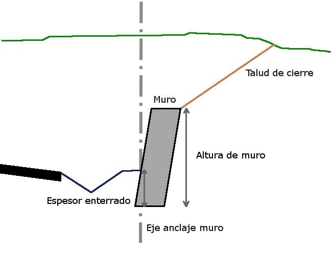 La altura del muro es fija y de 5 m y el talud de cierre es 2H:1V.