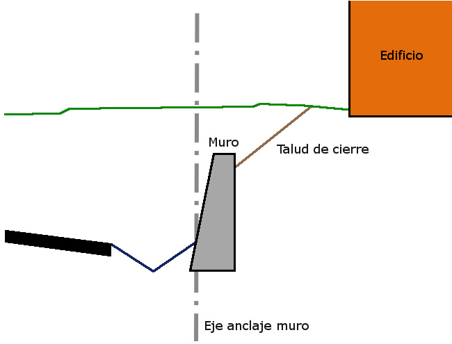El talud de cierre es 2H:1V y el muro sobresale 30 cm por encima del talud de cierre.