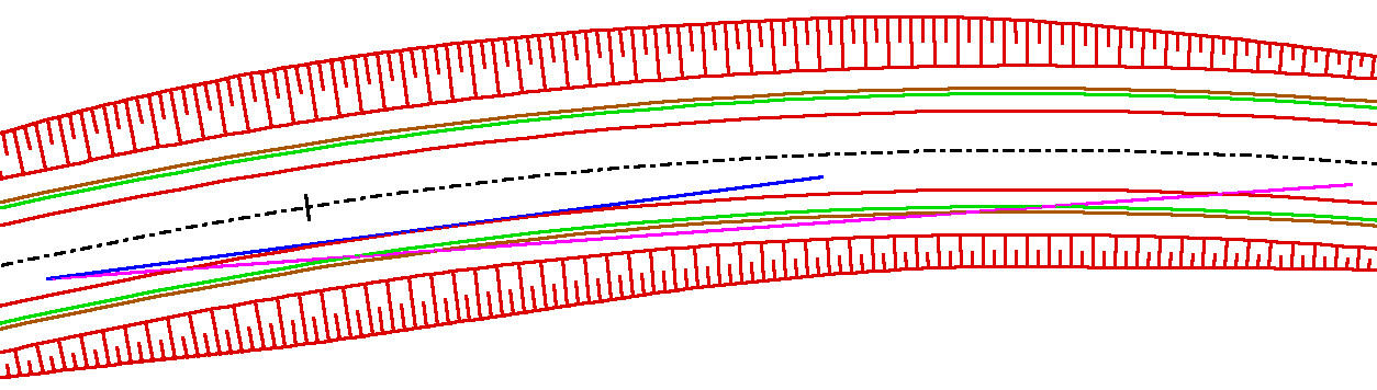 En ambos casos la representación utiliza la pluma de incumplimiento, ya que en esta estación la distancia de visibilidad disponible (110 metros) es inferior a la distancia de parada según Normativa para 80 km/h en la estación 1+000 (116.771).