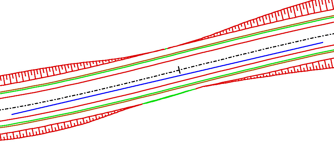 En ambos casos la representación utiliza la pluma de incumplimiento o cumplimiento dependiendo de si en esa estación del observador la distancia de visibilidad disponible es inferior o superior a la distancia de parada según Normativa (en este ejemplo, la pluma de cumplimiento).